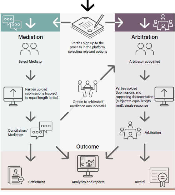 Parties may opt for a mediation process only, a mediation process followed by binding arbitration or an arbitration only. Impartiality is guaranteed through independent mediators and arbitrators which can be selected from a pre-agreed panel of independent sector specialists available through the platform, or you may appoint your own.