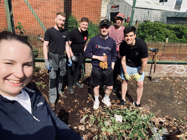 Maintaining green spaces, Newcastle In Newcastle we volunteered at the Ouseburn Trust, an independent charity in Ouseburn Valley, to maintain green spaces around the office area. Activities included clearing a community football pitch, cutting back overgrown hedges and trees to widen public footpaths and clearing logs from public areas that had been left as a consequence of the storms at the end of 2021 and early 2022. |